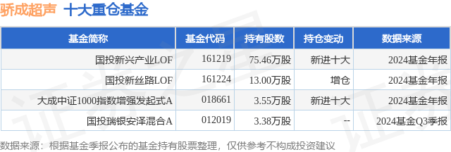 重仓骄成超声的公募基金请见下表: