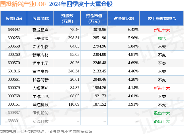 国投新兴产业LOF的前十大重仓股如下: