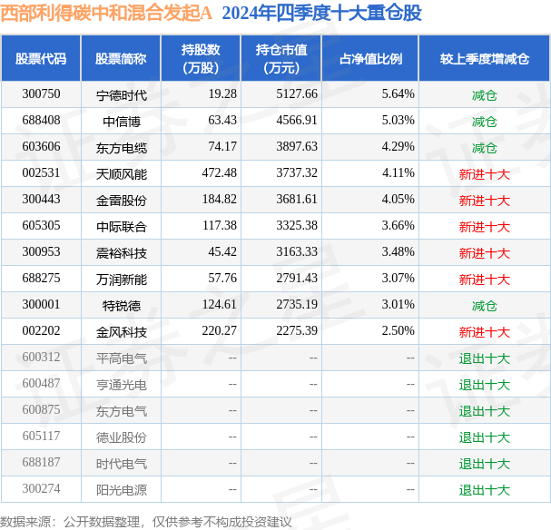西部利得碳中和混合发起A的前十大重仓股如下: