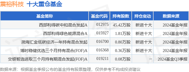 根据2024基金年报公募基金重仓股数据,重仓该股的公募基金共4家,其中持有数量最多的公募基金为西部利得基金的西部利得碳中和混合发起A。西部利得碳中和混合发起A目前规模为6.37亿元,最新净值0.6485(3月18日),较上一交易日上涨0.29%,近一年上涨8.44%。该公募基金现任基金经理为陈保国。陈保国在任的基金产品包括:西部利得景瑞灵活配置混合A,管理时间为2020年2月15日至今,期间收益率为111.03%;西部利得绿色能源混合A,管理时间为2022年11月29日至今,期间收益率为-14.79%;西部利得汇鑫6个月持有期混合A,管理时间为2023年7月25日至今,期间收益率为9.62%。
