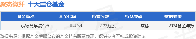 根据2024基金年报公募基金重仓股数据,重仓该股的公募基金共1家,其中持有数量最多的公募基金为泓德基金的泓德慧享混合A。泓德慧享混合A目前规模为2.37亿元,最新净值0.9658(3月18日),较上一交易日上涨0.06%,近一年上涨9.75%。该公募基金现任基金经理为赵端端 姚学康。姚学康在任的基金产品包括:泓德裕和纯债债券A,管理时间为2021年12月31日至今,期间收益率为8.88%;泓德睿享一年持有期混合A,管理时间为2022年3月24日至今,期间收益率为15.44%;赵端端在任的基金产品包括:泓德裕荣纯债债券A,管理时间为2018年9月25日至今,期间收益率为24.73%;泓德裕祥债券A,管理时间为2019年1月15日至今,期间收益率为31.43%;泓德睿享一年持有期混合A,管理时间为2020年6月24日至今,期间收益率为32.62%;泓德裕泰债券A,管理时间为2021年6月18日至今,期间收益率为22.33%。