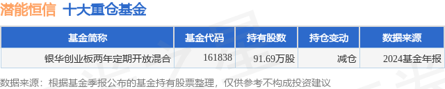 根据2024基金年报公募基金重仓股数据,重仓该股的公募基金共1家,其中持有数量最多的公募基金为银华基金的银华创业板两年定期开放混合。银华创业板两年定期开放混合目前规模为2.69亿元,最新净值0.6533(3月14日),较上一交易日上涨1.4%,近一年上涨0.86%。该公募基金现任基金经理为刘辉 王利刚。刘辉在任的基金产品包括:银华内需精选混合(LOF),管理时间为2017年3月15日至今,期间收益率为76.4%;银华同力精选混合,管理时间为2020年6月16日至今,期间收益率为-6.64%;王利刚在任的基金产品包括:银华成长先锋混合,管理时间为2019年12月31日至今,期间收益率为-9.92%;银华同力精选混合,管理时间为2021年4月26日至今,期间收益率为-5.72%;银华内需精选混合(LOF),管理时间为2021年4月26日至今,期间收益率为-0.03%。