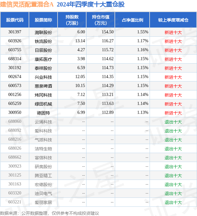建信灵活配置混合A的前十大重仓股如下: