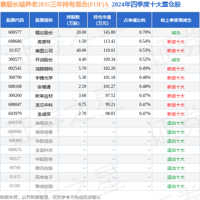 景顺长城养老2035三年持有混合(FOF)A的前十大重仓股如下: