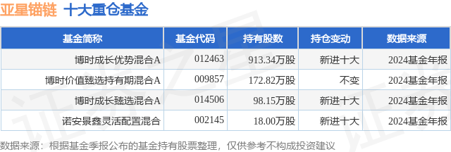 重仓亚星锚链的公募基金请见下表: