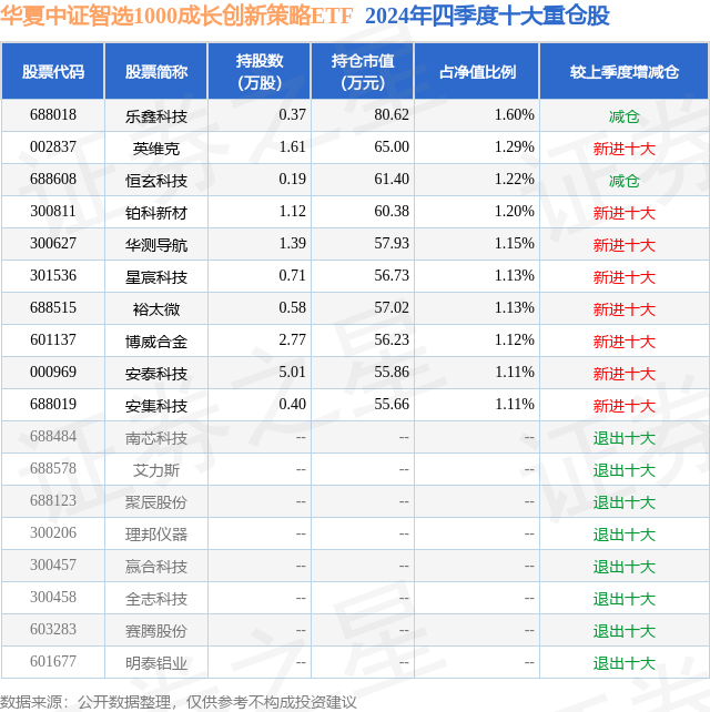华夏中证智选1000成长创新策略ETF的前十大重仓股如下: