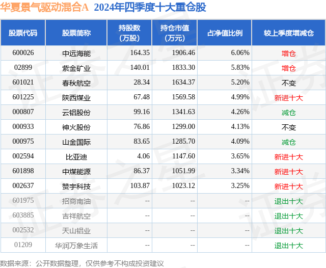 根据2024基金年报公募基金重仓股数据,重仓该股的公募基金共4家,其中持有数量最多的公募基金为华夏基金的华夏景气驱动混合A。华夏景气驱动混合A目前规模为2.68亿元,最新净值0.8607(3月26日),较上一交易日下跌0.7%,近一年上涨4.11%。该公募基金现任基金经理为翟宇航。翟宇航在任的基金产品包括:华夏兴融混合(LOF)A,管理时间为2021年8月16日至今,期间收益率为-36.5%;