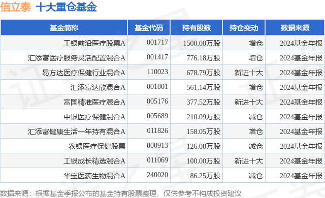 根据2024基金年报公募基金重仓股数据,重仓该股的公募基金共18家,其中持有数量最多的公募基金为工银瑞信基金的工银前沿医疗股票A。工银前沿医疗股票A目前规模为91.35亿元,最新净值2.685(3月26日),较上一交易日下跌0.11%,近一年下跌4.45%。该公募基金现任基金经理为赵蓓。赵蓓在任的基金产品包括:工银医疗保健股票,管理时间为2014年11月18日至今,期间收益率为140.5%;工银养老产业股票A,管理时间为2015年4月28日至今,期间收益率为37.1%;工银成长精选混合A,管理时间为2021年3月25日至今,期间收益率为-42.89%。