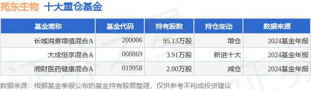 重仓苑东生物的公募基金请见下表: