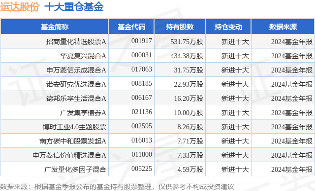 重仓运达股份的前十大公募基金请见下表: