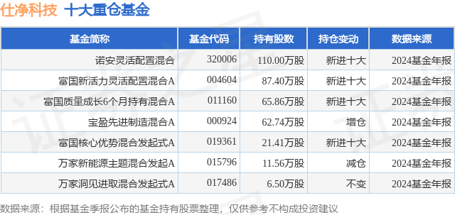 根据2024基金年报公募基金重仓股数据,重仓该股的公募基金共7家,其中持有数量最多的公募基金为诺安基金的诺安灵活配置混合。诺安灵活配置混合目前规模为6.51亿元,最新净值2.742(3月28日),较上一交易日下跌0.36%,近一年上涨2.43%。该公募基金现任基金经理为刘晓飞。刘晓飞在任的基金产品包括:诺安恒鑫混合,管理时间为2022年11月12日至今,期间收益率为0.49%;