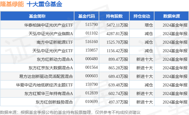 重仓隆基绿能的前十大公募基金请见下表: