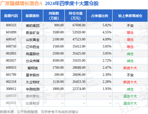 广发稳健增长混合A的前十大重仓股如下: