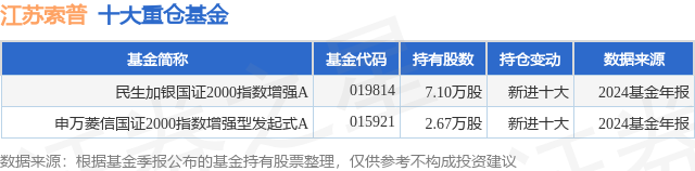 根据2024基金年报公募基金重仓股数据,重仓该股的公募基金共2家,其中持有数量最多的公募基金为民生加银基金的民生加银国证2000指数增强A。民生加银国证2000指数增强A目前规模为0.6亿元,最新净值1.2875(3月28日),较上一交易日下跌1.17%,近一年上涨28.6%。该公募基金现任基金经理为何江。何江在任的基金产品包括:民生加银沪深300ETF,管理时间为2019年12月24日至今,期间收益率为27.01%;民生加银沪深300ETF联接A,管理时间为2019年12月26日至今,期间收益率为21.24%;民生加银港股通高股息A,管理时间为2022年2月28日至今,期间收益率为3.74%;民生中证内地资源主题指数A,管理时间为2022年2月28日至今,期间收益率为-2.59%。