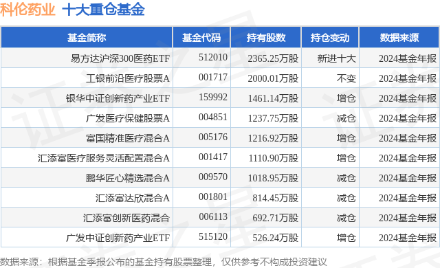 重仓科伦药业的前十大公募基金请见下表:
