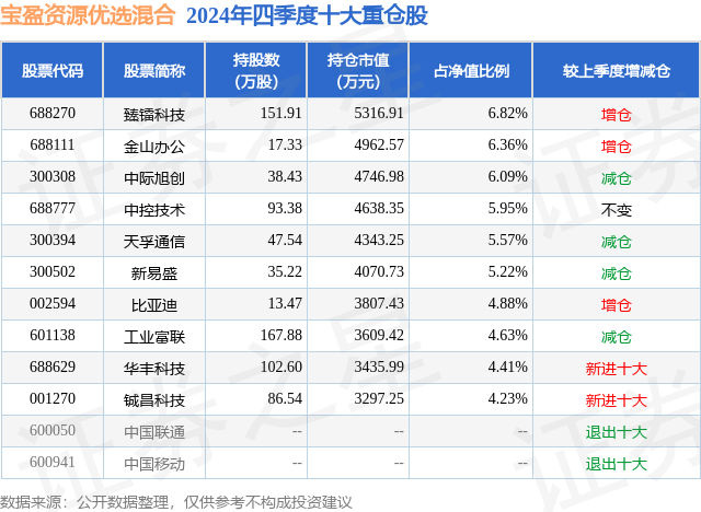 宝盈资源优选混合的前十大重仓股如下: