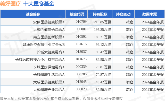 根据2024基金年报公募基金重仓股数据,重仓该股的公募基金共17家,其中持有数量最多的公募基金为安信基金的安信医药健康股票A。安信医药健康股票A目前规模为7.79亿元,最新净值0.9053(4月7日),较上一交易日下跌12.75%,近一年下跌16.38%。该公募基金现任基金经理为池陈森。