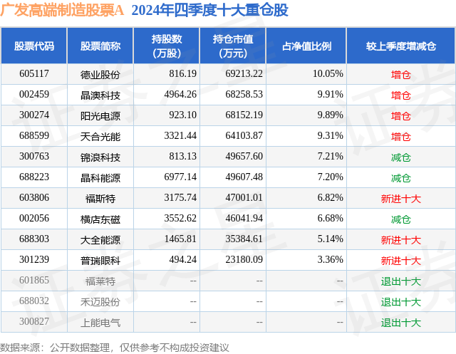 广发高端制造股票A的前十大重仓股如下: