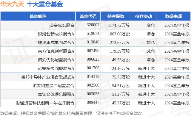 根据2024基金年报公募基金重仓股数据,重仓该股的公募基金共34家,其中持有数量最多的公募基金为诺安基金的诺安成长混合。诺安成长混合目前规模为196.08亿元,最新净值1.338(4月7日),较上一交易日下跌6.63%,近一年上涨23.89%。该公募基金现任基金经理为刘慧影。刘慧影在任的基金产品包括:诺安优化配置混合A,管理时间为2022年8月3日至今,期间收益率为8.75%;诺安积极回报混合A,管理时间为2023年9月29日至今,期间收益率为2.27%。