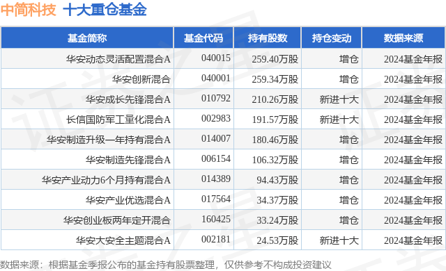重仓中简科技的前十大公募基金请见下表: