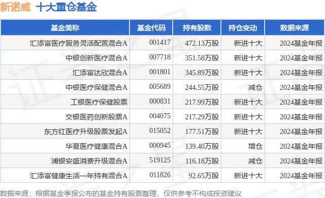 根据2024基金年报公募基金重仓股数据,重仓该股的公募基金共28家,其中持有数量最多的公募基金为汇添富基金的汇添富医疗服务灵活配置混合A。汇添富医疗服务灵活配置混合A目前规模为35.59亿元,最新净值1.362(4月8日),较上一交易日上涨0.15%,近一年上涨8.53%。该公募基金现任基金经理为张韡。张韡在任的基金产品包括:汇添富健康生活一年持有混合A,管理时间为2021年3月25日至今,期间收益率为0.26%;汇添富香港优势精选混合(QDII)A,管理时间为2021年9月29日至今,期间收益率为-19.7%;汇添富达欣混合A,管理时间为2022年10月21日至今,期间收益率为14.66%;
