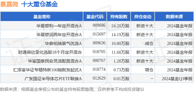 重仓景嘉微的公募基金请见下表: