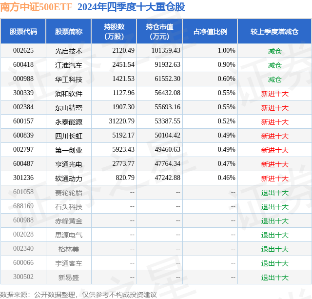 根据2024基金年报公募基金重仓股数据,重仓该股的公募基金共62家,其中持有数量最多的公募基金为南方基金的南方中证500ETF。南方中证500ETF目前规模为17.5亿元,最新净值5.4346(4月9日),较上一交易日上涨2.14%,近一年上涨3.41%。该公募基金现任基金经理为罗文杰。罗文杰在任的基金产品包括:南方中证500ETF联接(LOF)A,管理时间为2013年4月22日至今,期间收益率为77.92%;南方沪深300ETF,管理时间为2013年5月17日至今,期间收益率为94.1%;南方沪深300ETF联接A,管理时间为2013年5月17日至今,期间收益率为86.04%。