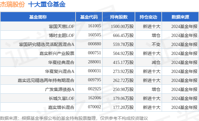 重仓杰瑞股份的前十大公募基金请见下表: