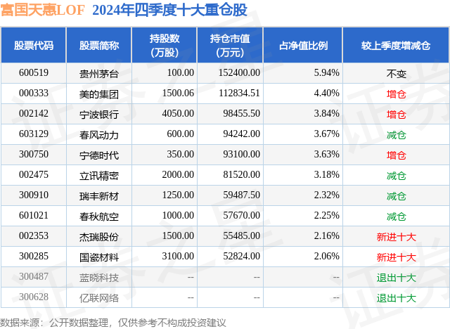 富国天惠LOF的前十大重仓股如下: