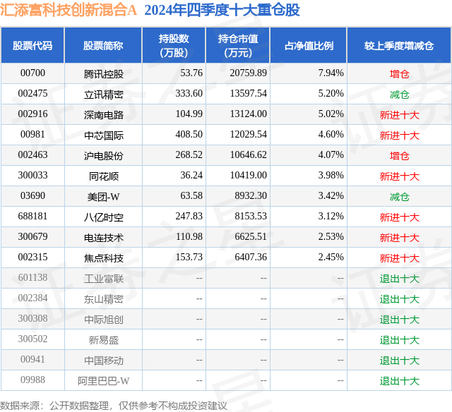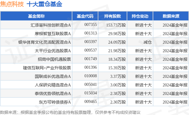 根据2024基金年报公募基金重仓股数据,重仓该股的公募基金共11家,其中持有数量最多的公募基金为汇添富基金的汇添富科技创新混合A。汇添富科技创新混合A目前规模为20.48亿元,最新净值1.9703(4月9日),较上一交易日上涨2.29%,近一年上涨19.49%。该公募基金现任基金经理为马翔。马翔在任的基金产品包括:汇添富民营活力混合,管理时间为2016年3月11日至今,期间收益率为54.83%;汇添富策略增长灵活配置混合,管理时间为2020年7月24日至今,期间收益率为-13.64%;汇添富科创板2年定开混合,管理时间为2020年7月28日至今,期间收益率为-15.87%。