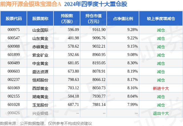 前海开源金银珠宝混合A的前十大重仓股如下: