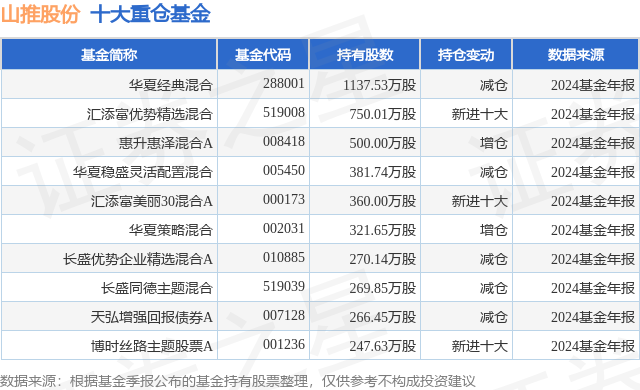 重仓山推股份的前十大公募基金请见下表: