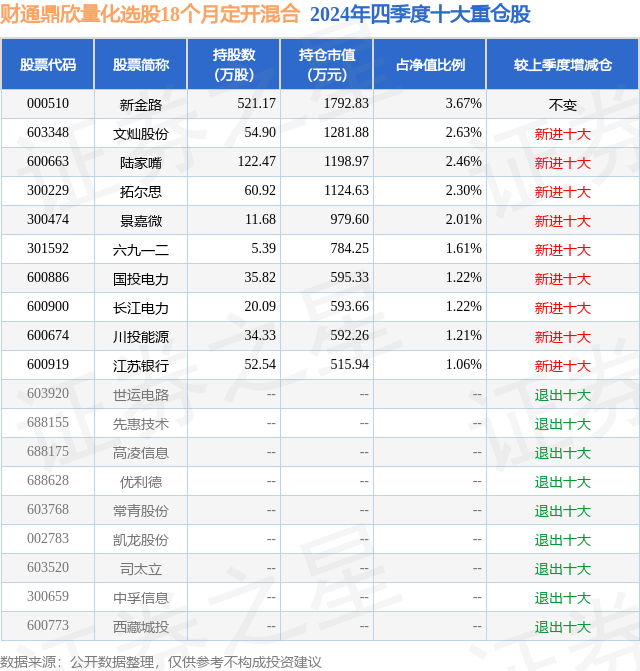 财通鼎欣量化选股18个月定开混合的前十大重仓股如下: