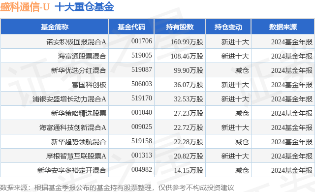 重仓盛科通信-U的前十大公募基金请见下表: