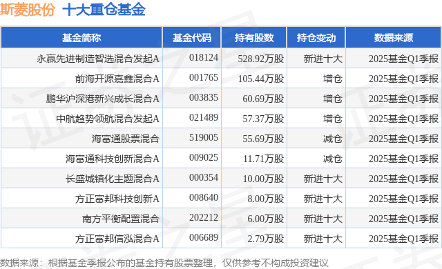 根据2025基金Q1季报公募基金重仓股数据,重仓该股的公募基金共17家,其中持有数量最多的公募基金为永赢基金的永赢先进制造智选混合发起A。永赢先进制造智选混合发起A目前规模为30.41亿元,最新净值1.7846(6月18日),较上一交易日上涨1.23%,近一年上涨92.12%。该公募基金现任基金经理为张璐。张璐在任的基金产品包括:永赢高端装备智选混合发起A,管理时间为2022年7月15日至今,期间收益率为-23.11%;永赢上证科创板100指数增强发起A,管理时间为2024年5月28日至今,期间收益率为23.28%;永赢国证通用航空产业ETF,管理时间为2025年1月14日至今,期间收益率为13.03%。