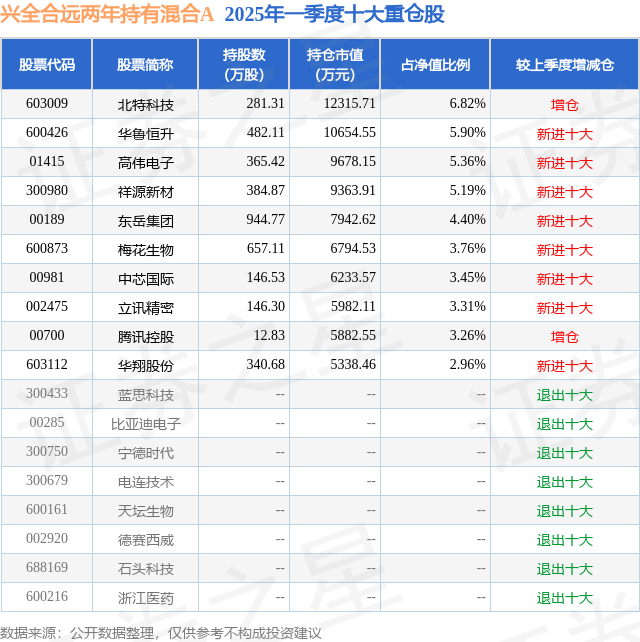 根据2025基金Q1季报公募基金重仓股数据,重仓该股的公募基金共1家,其中持有数量最多的公募基金为兴证全球基金的兴全合远两年持有混合A。兴全合远两年持有混合A目前规模为17.29亿元,最新净值0.7914(6月18日),较上一交易日下跌0.26%,近一年上涨19.0%。该公募基金现任基金经理为吴钊华。