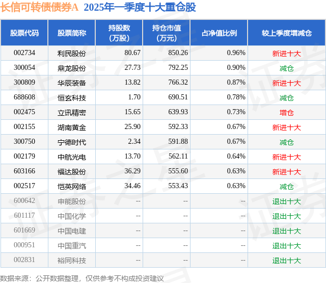 长信可转债债券A的前十大重仓股如下:
