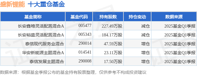 根据2025基金Q1季报公募基金重仓股数据,重仓该股的公募基金共5家,其中持有数量最多的公募基金为长安基金的长安鑫禧灵活配置混合A。长安鑫禧灵活配置混合A目前规模为0.62亿元,最新净值0.3251(6月18日),较上一交易日下跌0.58%,近一年下跌14.08%。该公募基金现任基金经理为江博文。江博文在任的基金产品包括:长安裕泰混合A,管理时间为2024年7月9日至今,期间收益率为14.13%;长安鑫旺价值混合A,管理时间为2024年10月10日至今,期间收益率为-2.93%;长安鑫利优选混合A,管理时间为2025年1月23日至今,期间收益率为0.94%;