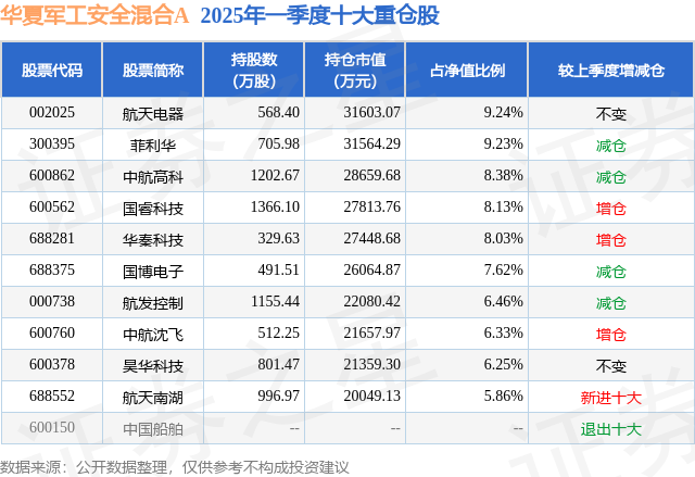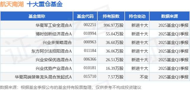 根据2025基金Q1季报公募基金重仓股数据,重仓该股的公募基金共7家,其中持有数量最多的公募基金为华夏基金的华夏军工安全混合A。华夏军工安全混合A目前规模为29.45亿元,最新净值1.498(6月18日),较上一交易日上涨0.67%,近一年上涨18.98%。该公募基金现任基金经理为万方方。