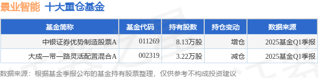 重仓景业智能的公募基金请见下表: