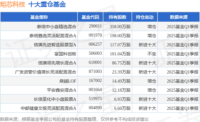 重仓炬芯科技的前十大公募基金请见下表: