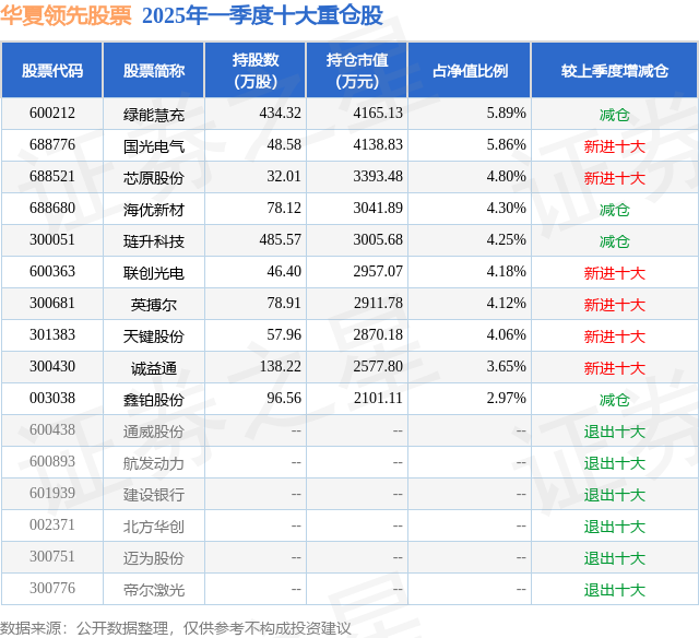 根据2025基金Q1季报公募基金重仓股数据,重仓该股的公募基金共6家,其中持有数量最多的公募基金为华夏基金的华夏领先股票。华夏领先股票目前规模为7.07亿元,最新净值0.456(6月19日),较上一交易日下跌2.98%,近一年下跌10.76%。该公募基金现任基金经理为王晓李。