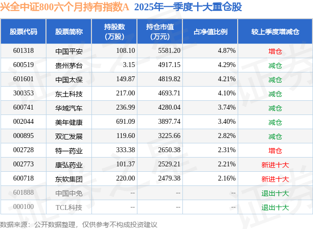 兴全中证800六个月持有指数A的前十大重仓股如下: