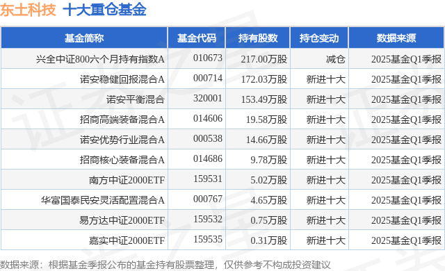重仓东土科技的前十大公募基金请见下表: