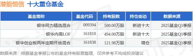 根据2025基金Q1季报公募基金重仓股数据,重仓该股的公募基金共3家,其中持有数量最多的公募基金为银华基金的银华同力精选混合。银华同力精选混合目前规模为14.63亿元,最新净值0.9592(6月19日),较上一交易日下跌1.56%,近一年上涨14.92%。该公募基金现任基金经理为刘辉 王利刚。刘辉在任的基金产品包括:银华内需精选混合(LOF),管理时间为2017年3月15日至今,期间收益率为84.57%;银华创业板两年定期开放混合,管理时间为2020年8月7日至今,期间收益率为-34.12%。王利刚在任的基金产品包括:银华成长先锋混合,管理时间为2019年12月31日至今,期间收益率为-5.81%;银华创业板两年定期开放混合,管理时间为2020年8月7日至今,期间收益率为-34.12%;银华内需精选混合(LOF),管理时间为2021年4月26日至今,期间收益率为4.6%。