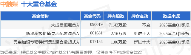 根据2025基金Q1季报公募基金重仓股数据,重仓该股的公募基金共3家,其中持有数量最多的公募基金为大成基金的大成景恒混合A。大成景恒混合A目前规模为3.17亿元,最新净值2.8892(6月19日),较上一交易日下跌1.15%,近一年上涨53.78%。该公募基金现任基金经理为苏秉毅。苏秉毅在任的基金产品包括:大成核心双动力混合A,管理时间为2016年3月4日至今,期间收益率为58.68%;大成卓享一年持有混合A,管理时间为2023年4月25日至今,期间收益率为5.01%;大成丰享回报混合A,管理时间为2024年1月29日至今,期间收益率为10.88%。