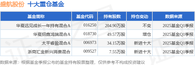 根据2025基金Q1季报公募基金重仓股数据,重仓该股的公募基金共4家,其中持有数量最多的公募基金为华夏基金的华夏远见成长一年持有混合A。华夏远见成长一年持有混合A目前规模为6.36亿元,最新净值0.8979(6月20日),较上一交易日下跌1.03%,近一年上涨30.21%。该公募基金现任基金经理为钟帅。钟帅在任的基金产品包括:华夏行业景气混合,管理时间为2020年7月28日至今,期间收益率为94.0%;华夏招鑫鸿瑞混合A,管理时间为2024年1月16日至今,期间收益率为48.96%。