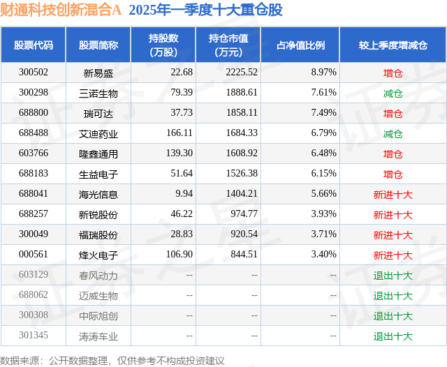 根据2025基金Q1季报公募基金重仓股数据,重仓该股的公募基金共2家,其中持有数量最多的公募基金为财通基金的财通科技创新混合A。财通科技创新混合A目前规模为1.83亿元,最新净值0.9733(6月20日),较上一交易日下跌0.23%,近一年下跌4.58%。该公募基金现任基金经理为张胤。张胤在任的基金产品包括:财通福盛混合发起(LOF)A,管理时间为2021年3月24日至今,期间收益率为2.48%;财通科创主题灵活配置混合(LOF),管理时间为2021年9月27日至今,期间收益率为-20.37%;财通优势行业轮动混合A,管理时间为2022年3月4日至今,期间收益率为-25.12%。