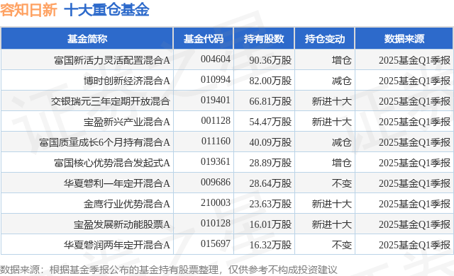 根据2025基金Q1季报公募基金重仓股数据,重仓该股的公募基金共21家,其中持有数量最多的公募基金为富国基金的富国新活力灵活配置混合A。富国新活力灵活配置混合A目前规模为5.41亿元,最新净值2.5838(6月20日),较上一交易日下跌1.53%,近一年上涨15.64%。该公募基金现任基金经理为吴栋栋。吴栋栋在任的基金产品包括:富国质量成长6个月持有混合A,管理时间为2022年2月28日至今,期间收益率为8.93%;富国核心优势混合发起式A,管理时间为2023年12月1日至今,期间收益率为35.2%。