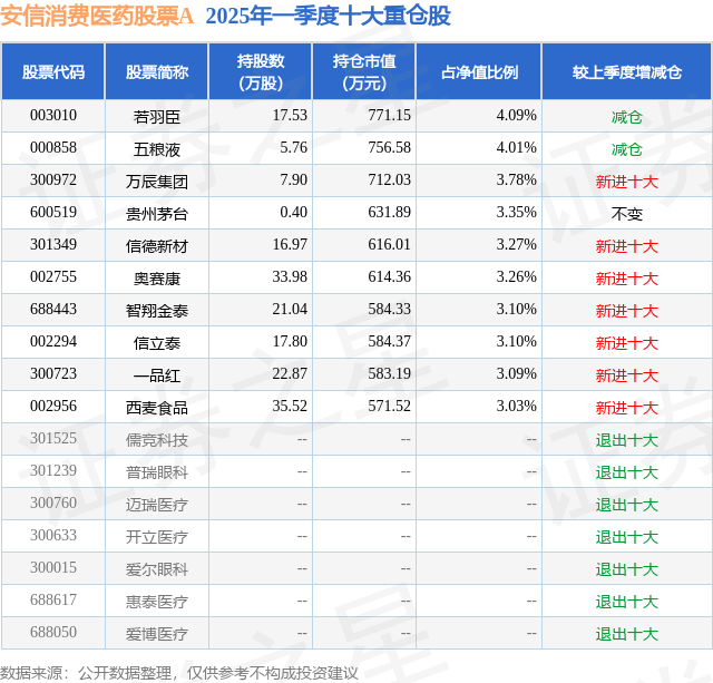 根据2025基金Q1季报公募基金重仓股数据,重仓该股的公募基金共3家,其中持有数量最多的公募基金为安信基金的安信消费医药股票A。安信消费医药股票A目前规模为1.88亿元,最新净值1.2516(6月23日),较上一交易日上涨1.21%,近一年上涨18.89%。该公募基金现任基金经理为陈嵩昆 徐衍鹏。徐衍鹏在任的基金产品包括:安信医药创新股票型发起A,管理时间为2024年10月15日至今,期间收益率为11.55%。